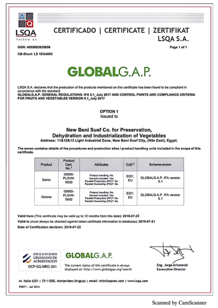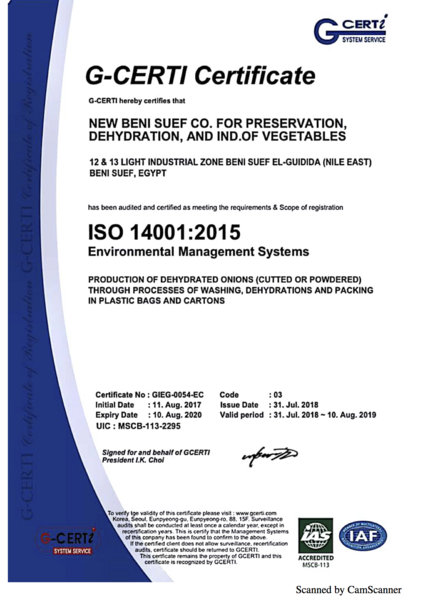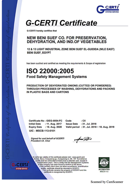 Since then it has been a leading processor of dehydrated onion in Egypt. In 1996, we extended our activities to cover the exporting requirements of dehydrated onion through establishing the New Beni Suef Co. for preservation, dehydration and industrialization of vegetables.